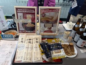 スイスでは、当社商品をお取り扱いいただいている日本食材販売店2店舗にて、試食販売会を実施しました。今回ご提供したのは、一般的な醤油仕立てのめんつゆではなく、焼肉のたれを使用した「ラーメンスタイル」の稲庭うどんです。