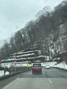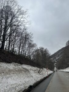 道中通った国道108号線の鳴子峠では、まだ雪が残っており、春と冬が同居するような景色が広がっていました。