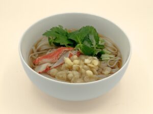 春の香りを感じるやさしい味わいの「三つ葉とカニカマの稲庭うどん」。