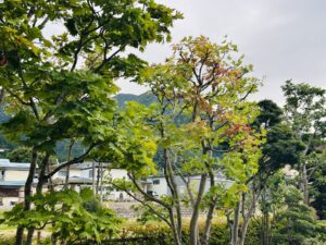 庭のモミジが、いつの間にか赤く色づき始めていました。