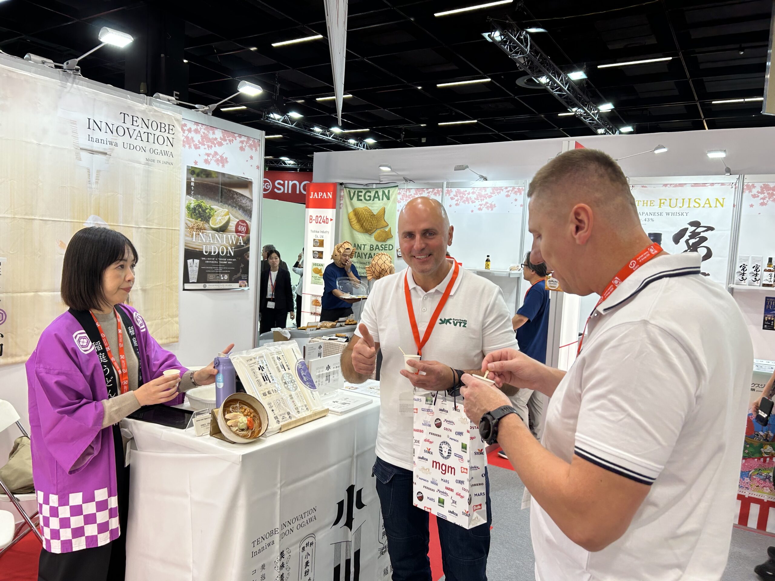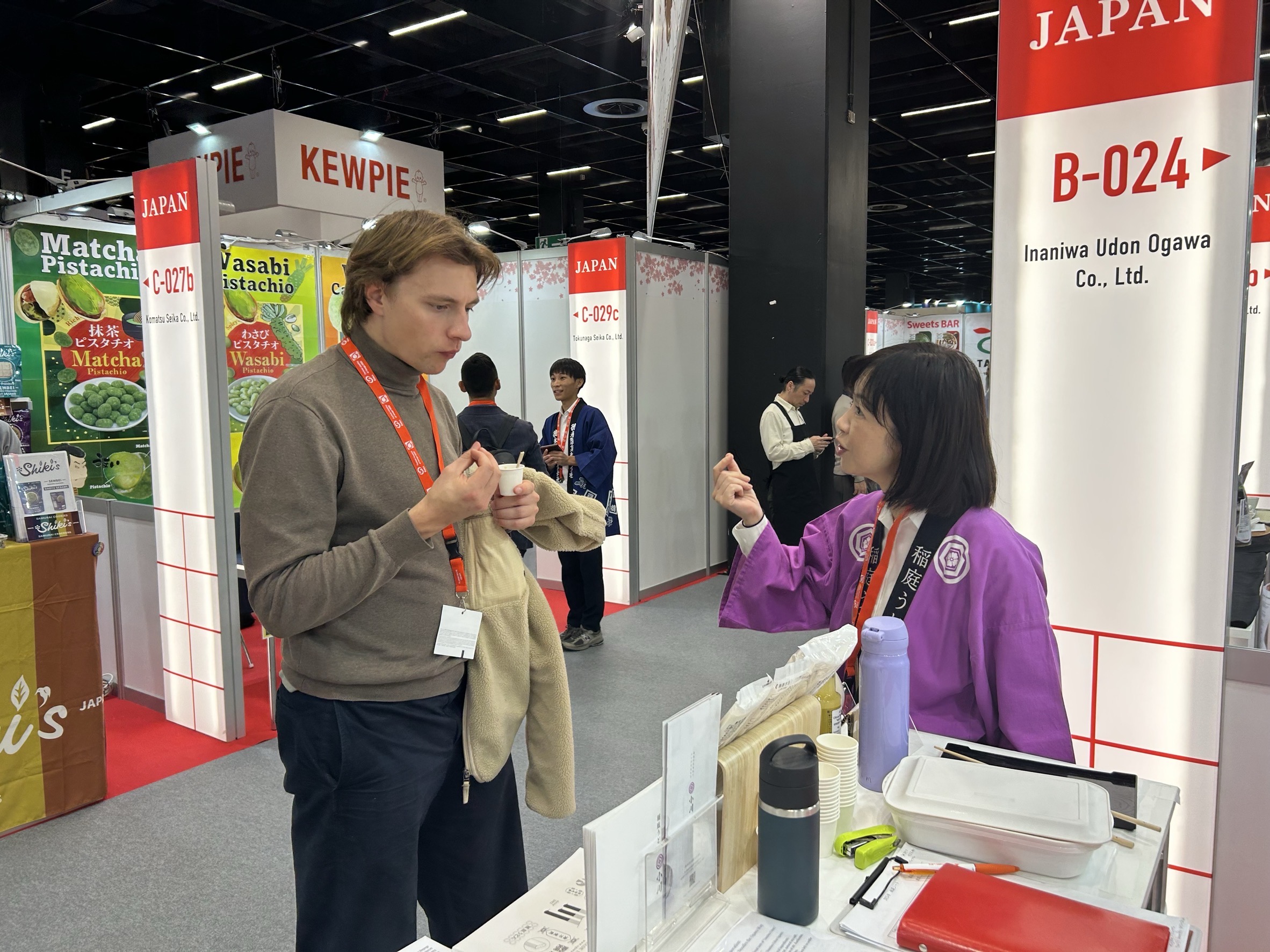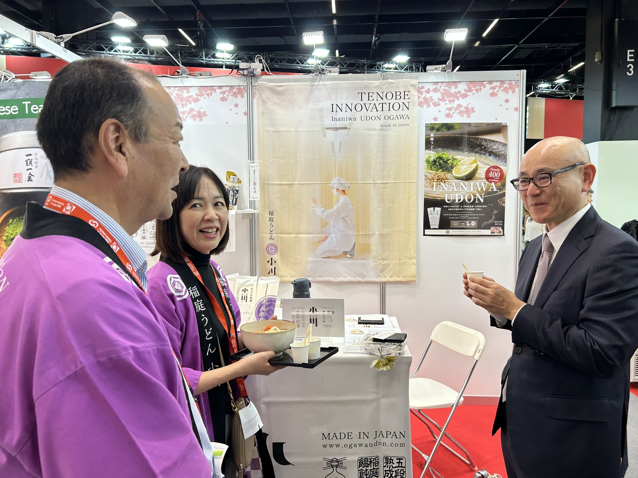 会期中には、在デュッセルドルフ日本国総領事館の総領事にも当社ブースへお越しいただき、稲庭うどんをご試食のうえ、温かい激励のお言葉を頂戴しました。大変心強く、励みになるひとときでした。