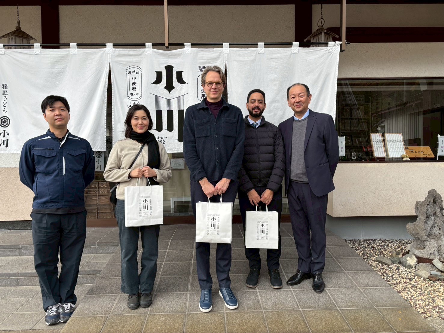 工場では、稲庭うどんの生真面目な製法を一つひとつご覧いただき、工程の一部も実際にご体感いただきました。想像以上に繊細で、手仕事に頼る工程の多さに驚かれ、「これは簡単には真似できない」「職人の感覚が生きている」と感激されたご様子が印象的でした。そして、「もっと現地のお客様にすすめたい」と力強い言葉もいただきました。