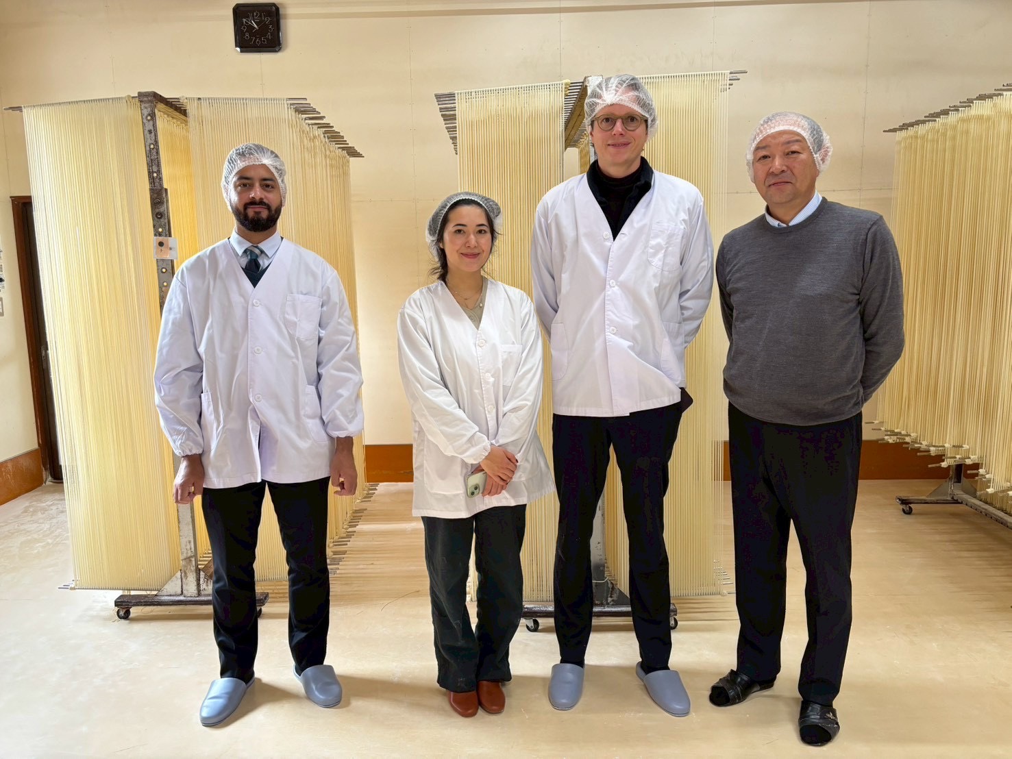 UMAMIPARISの社長とスタッフの皆さまが、工場視察のため、はるばる稲庭まで足を運んでくださいました。数年前から当社商品を販売いいただき、「いつかはぜひ稲庭へ」とお話ししていたご訪問が、実際に叶ったことに大きな喜びを感じました。